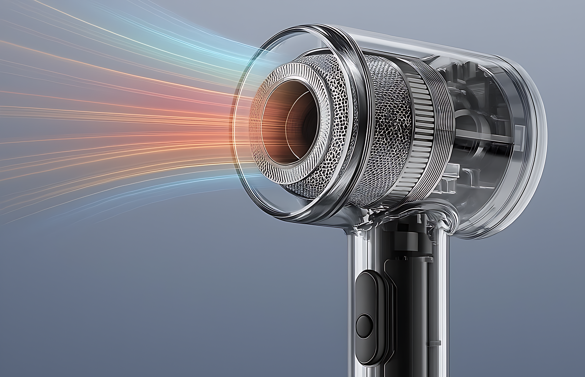 Le DysseBlow est équipé d’un moteur haute vitesse qui réduit le temps de séchage, tout en limitant l’exposition à la chaleur.